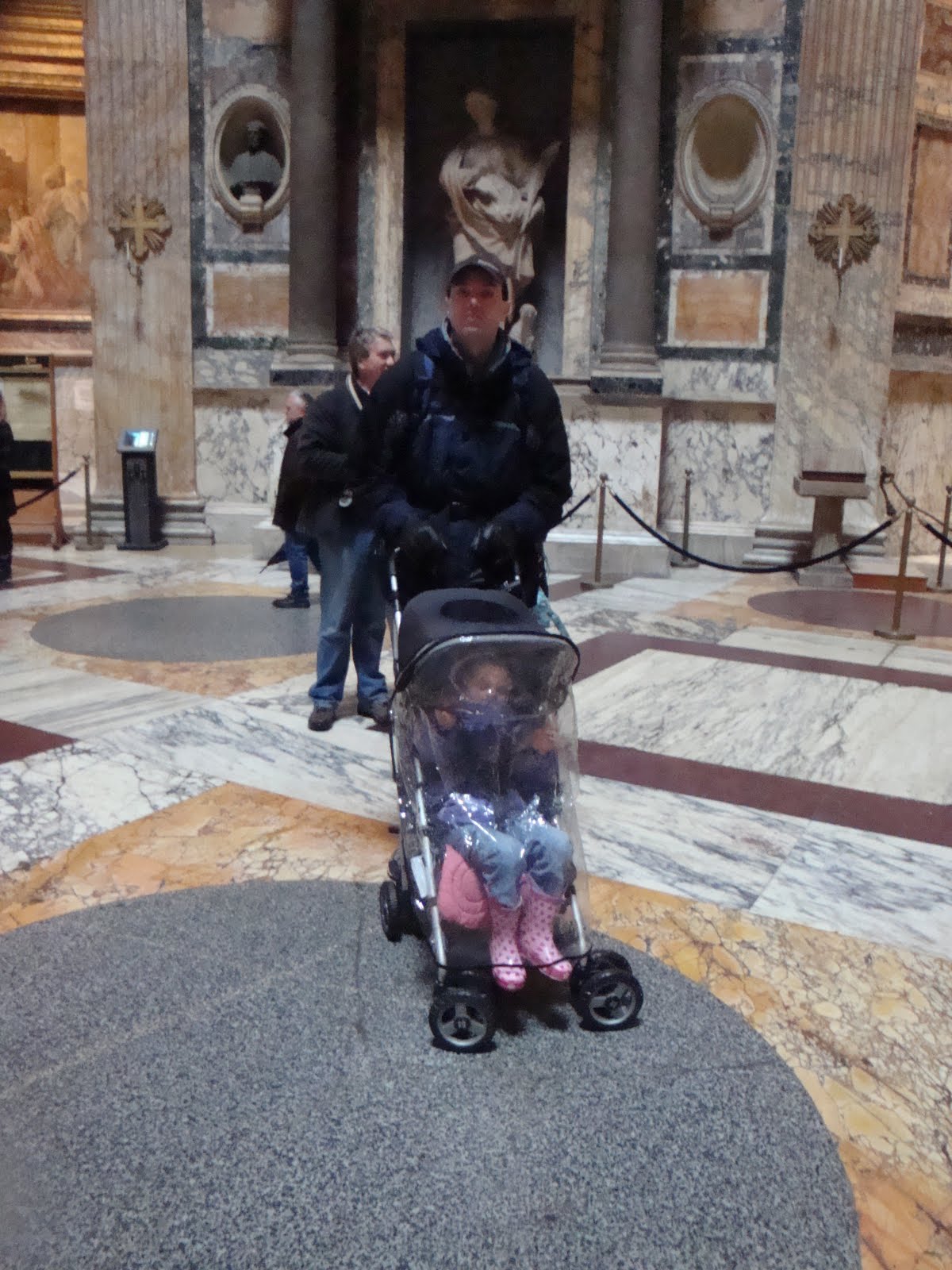 After that, we found a place to stop for some traditional Italian pizza for lunch (and to dry out and warm up a little bit). This was one of the two parts of Rome that were probably all Madeline really enjoyed. We were extremely glad we had her stroller, complete with rain cover, all day long!